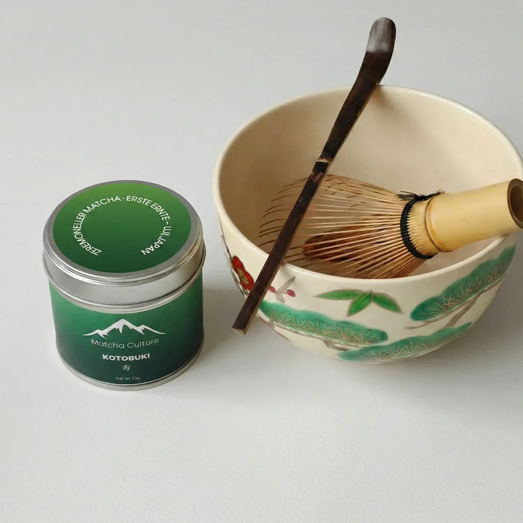 KOTOBUKI stammt aus ausgewählten Teeanbaugebieten Japans, in denen traditionelle Teekunst und moderne Qualitätskontrollen Hand in Hand gehen. Das Zusammenspiel aus Klima, Boden und Handarbeit bildet die Grundlage für einen Matcha von gleichbleibend hoher Qualität.